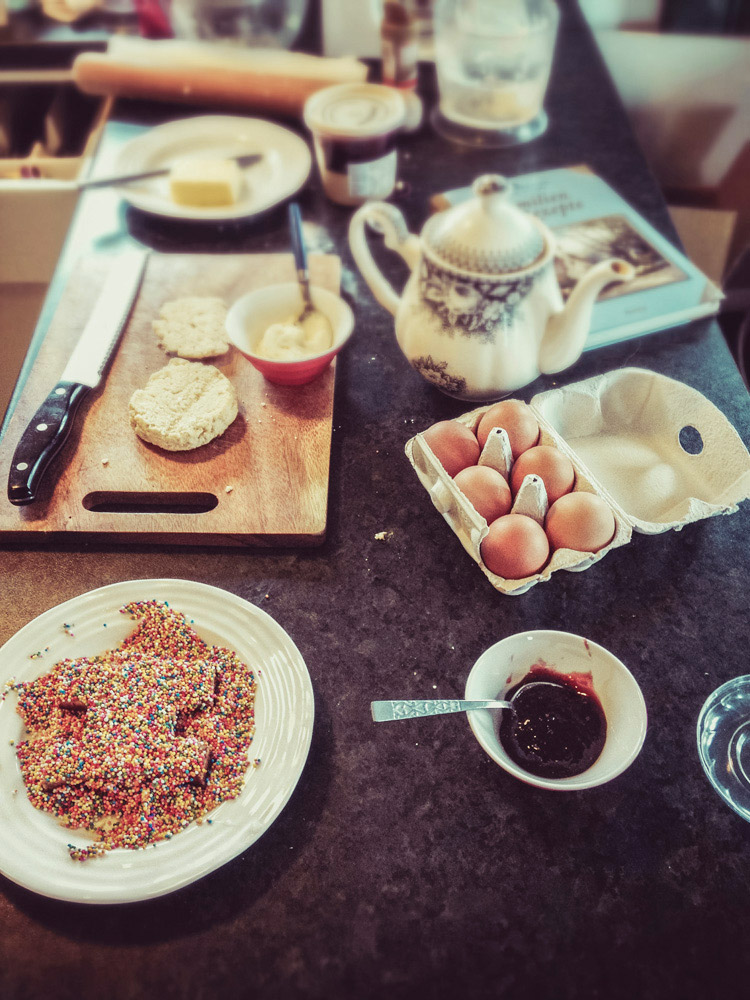 Caspian Ievers lives in Wellington, New Zealand. He is originally from the UK and ‘Home’ is about his Mum’s cooking and going to visit her. He photographed all the stages he went through to create the letters—from his home baking to enjoying the jam laden scone with a cup of tea (below).