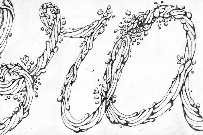 Bárbara Ana Gómez is a Spanish illustrator who moved to London in 2007. Her Type Tasting submission ‘Celebration’ is an intricate combination of flowing shapes and mischievous faries which were sketched out by hand before being ounlined in pen and ink then scanned in and coloured up in Photoshop.