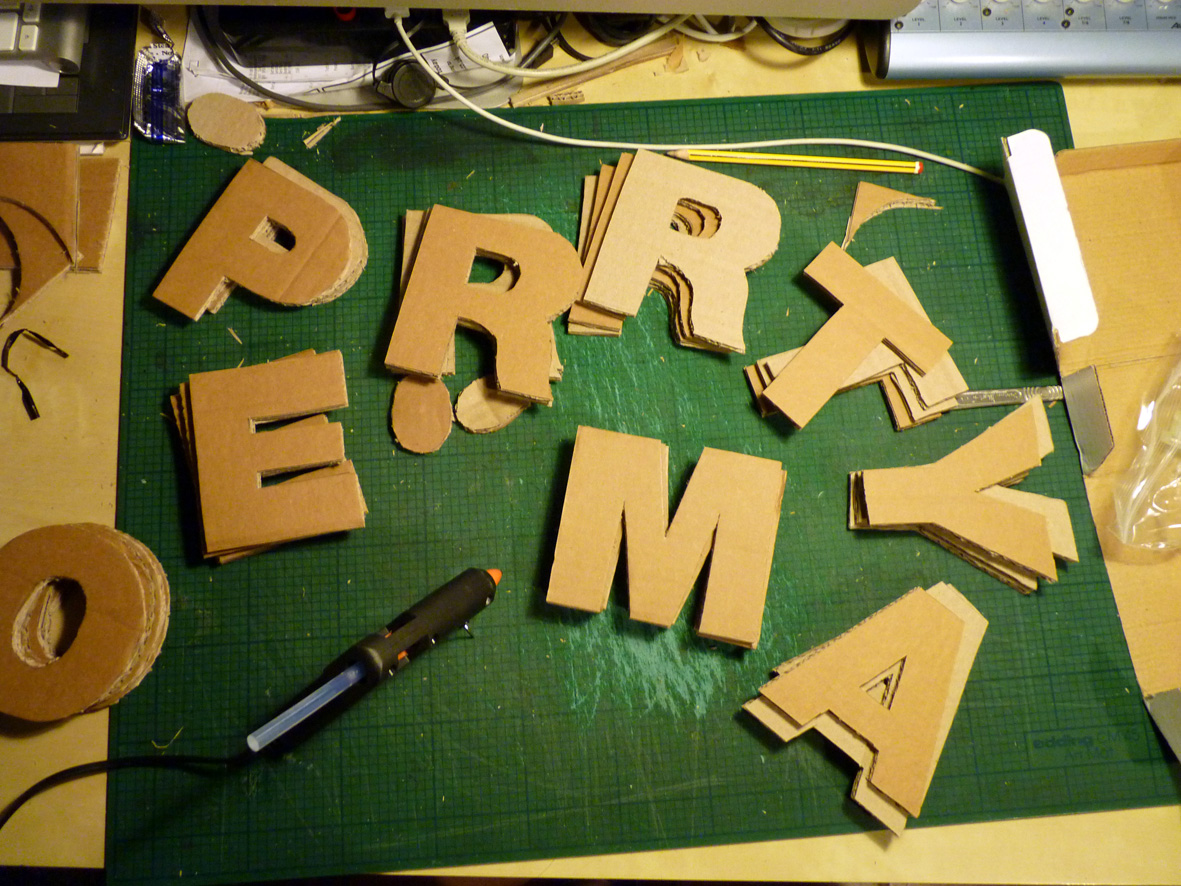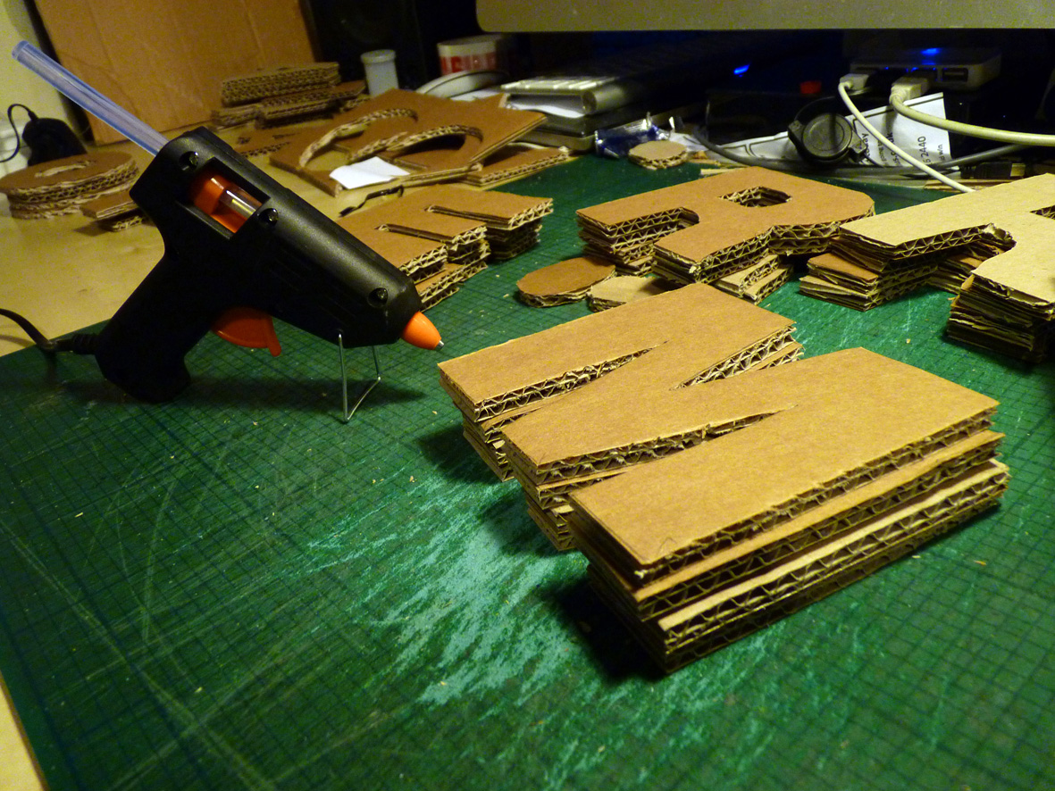 “Many of the words picked by contributing artists for this project are celebratory, my first word is quite the opposite, A reflection on the homeless ‘culture’ and the existence of the homeless beneath the noses of the daily grind. Everything is temporary when you get moved on, when you nomadically source food, shelter and friendship. The material (cardboard) reflects a material used as shelter and as a ‘padding’ to buffer the hard cold concrete beds which many people sleep on in the city that never sleeps. Cardboard itself is temporary, ideally this piece of typography would be exhibited in a city doorway, to be poached and weathered until it is no more.”