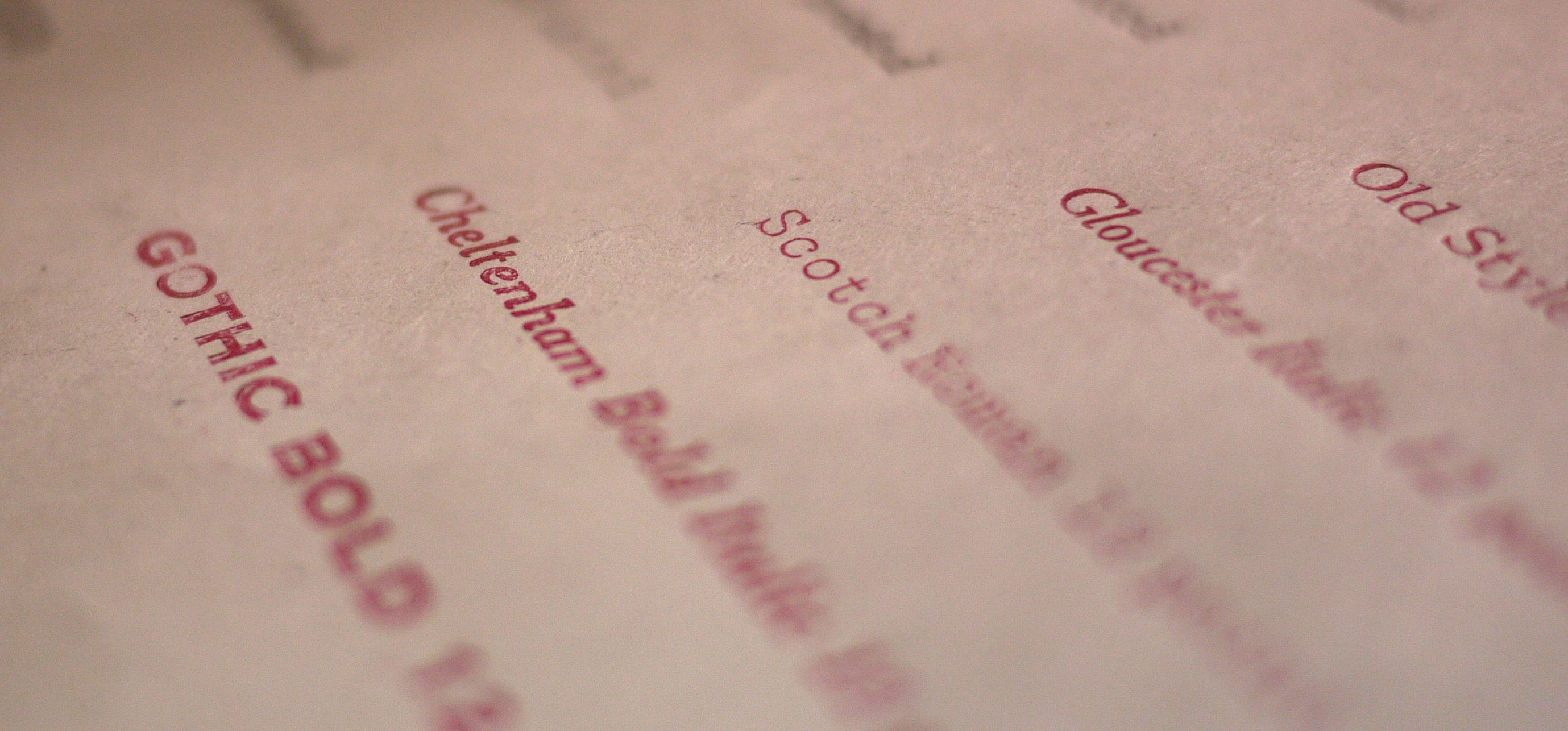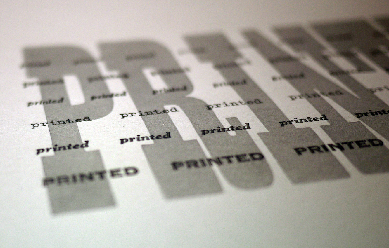 - ‘Printed’ is a collaboration between Unite & Type founder Gloria Daniel and printmaker Mary Kuper. Their piece is letterpress printed, it features large, slab serif display letters which is overprinted in a selection of body copy fonts. The repetition references the printing process and the key to the fonts on the right provides us with an interesting comparison between the different type styles.