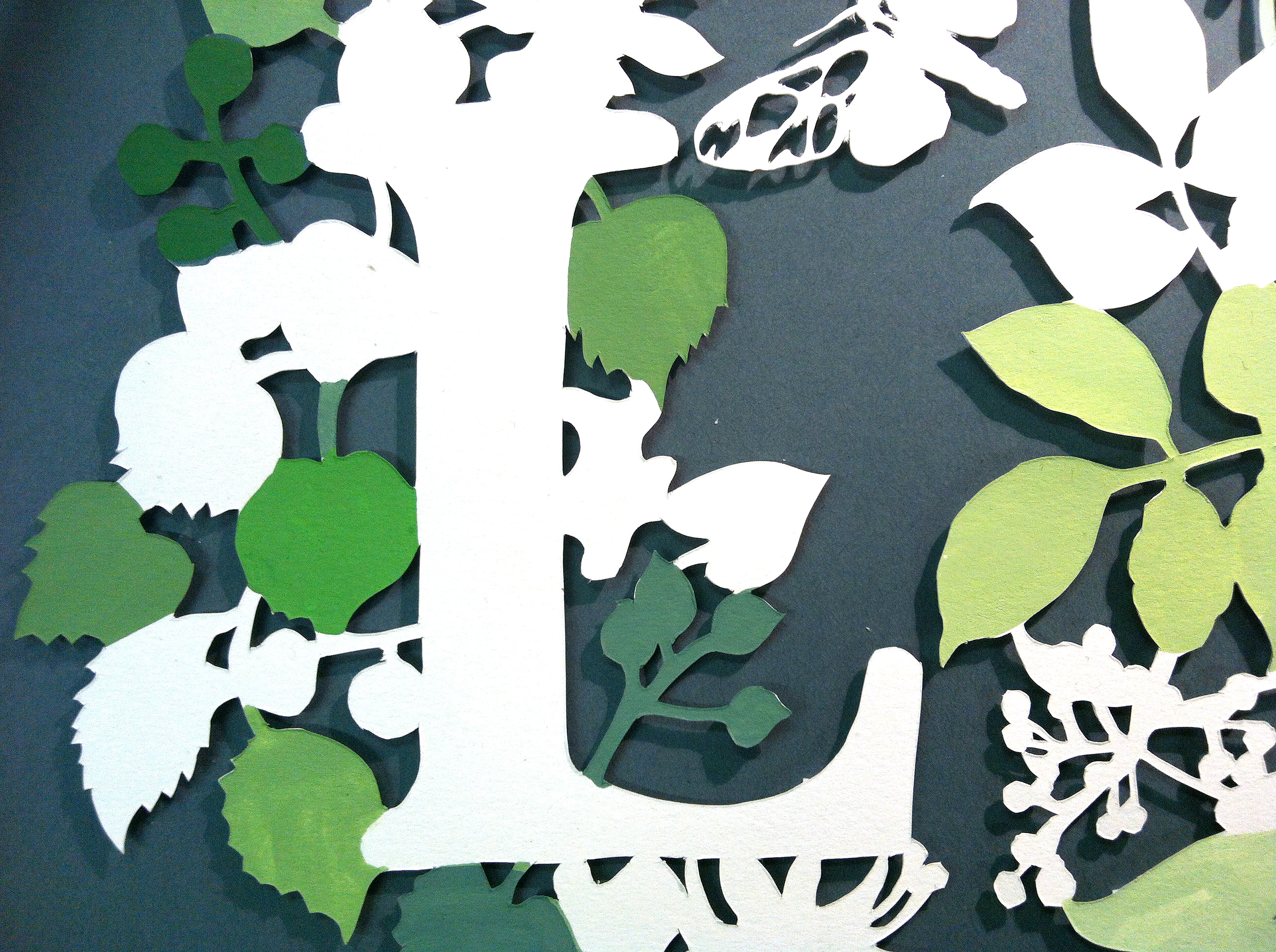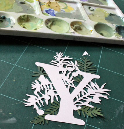 “My work always starts with drawing and sketchbook work; I then do a final drawing and use a scalpel to cut out the details; the last step is handpainting each piece with gouache paint, which has a lovely natural matte quality.”