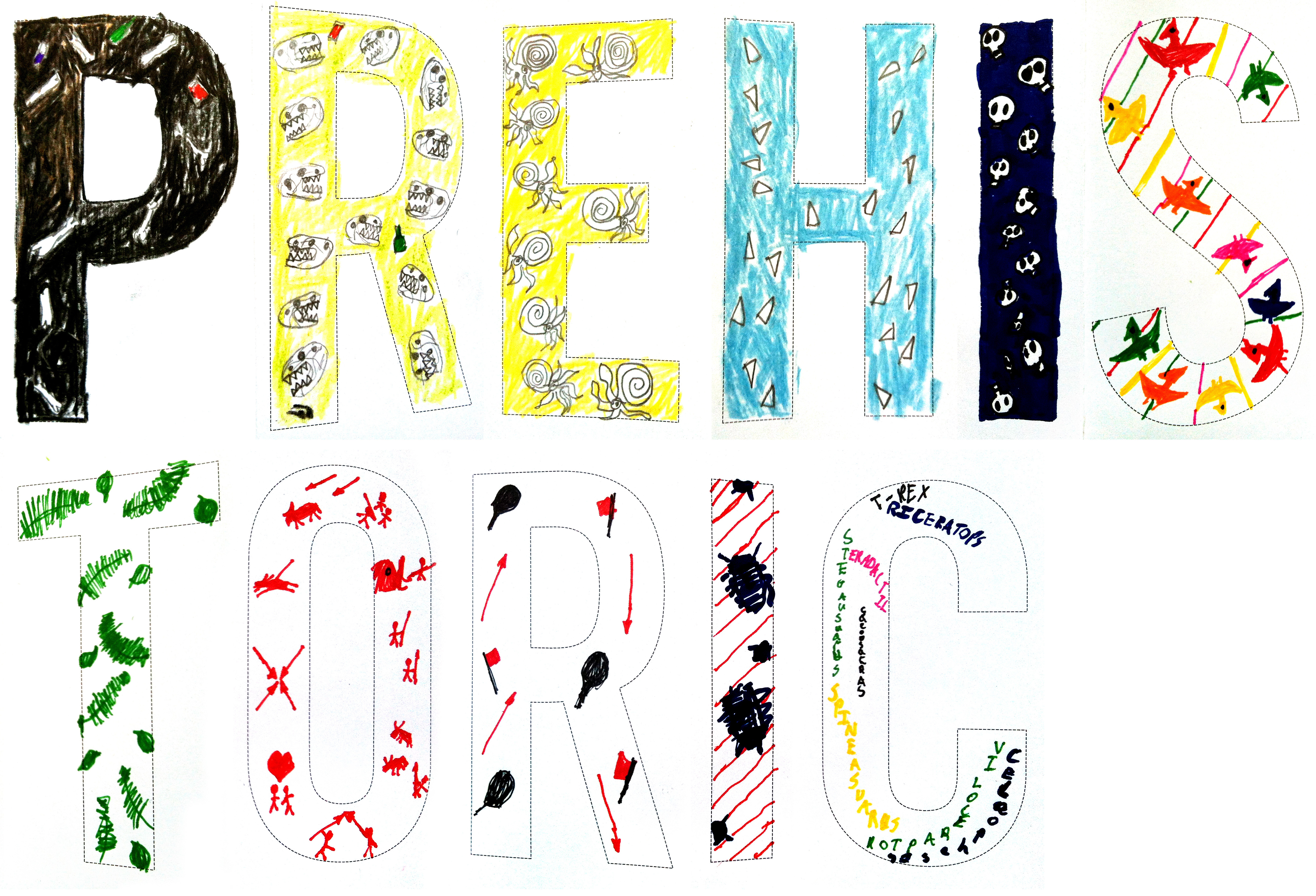 Nawathe’s letters are filled with meticulously drawn details of dinosaurs and prehistoric animals. It took him a number of evenings to finish this as it’s a very long word, but he patiently completed it and we’re delighted to have it in the collection.