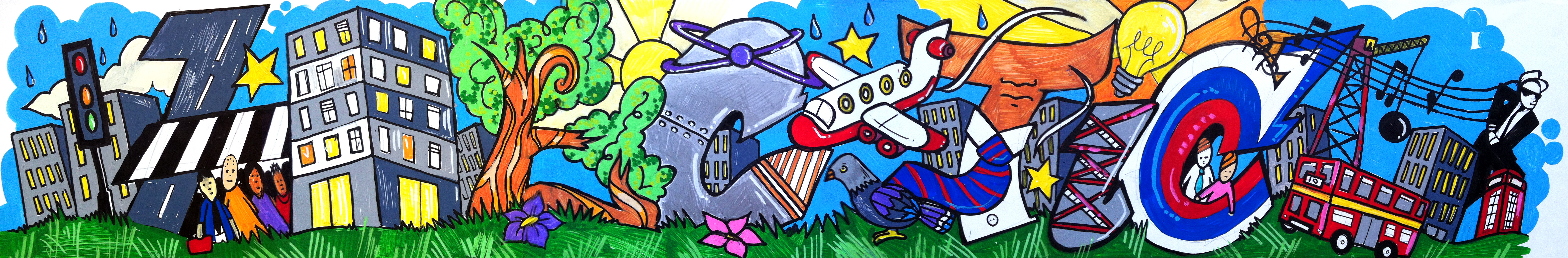 “I plan a rough idea first which is the first stage, then I redraw the piece to my better liking in pencil for the final piece. It then gets inked in with fine liners then coloured in with paint pens in this instance and re outlined where necessary. I had a lot of fun with this piece. I hope it reflects the fast pace and movement of hectic London.”