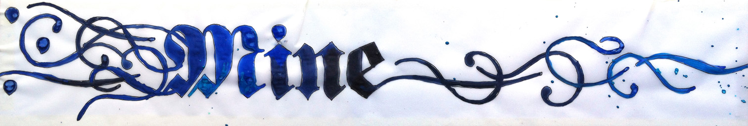 “The typeface is based on Fette Fraktur which was designed by German punchcutter Johann Christian Bauer in 1850. The flourishes are from Dallaince designed by Frank Heine in 2000.”