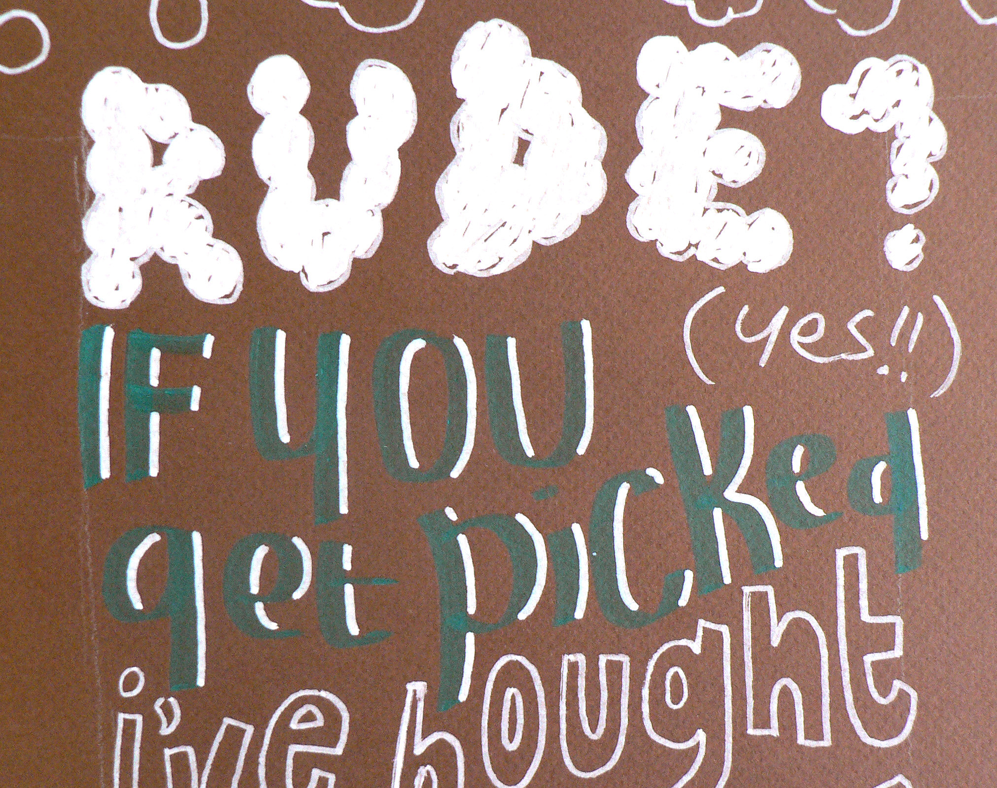 On Saturday Oli Frape was our ‘Live Lettering’ man at the V&A, documenting comments and conversations overheard in the workshop throughout the day. Take a look and see if you see any familiar snippets.