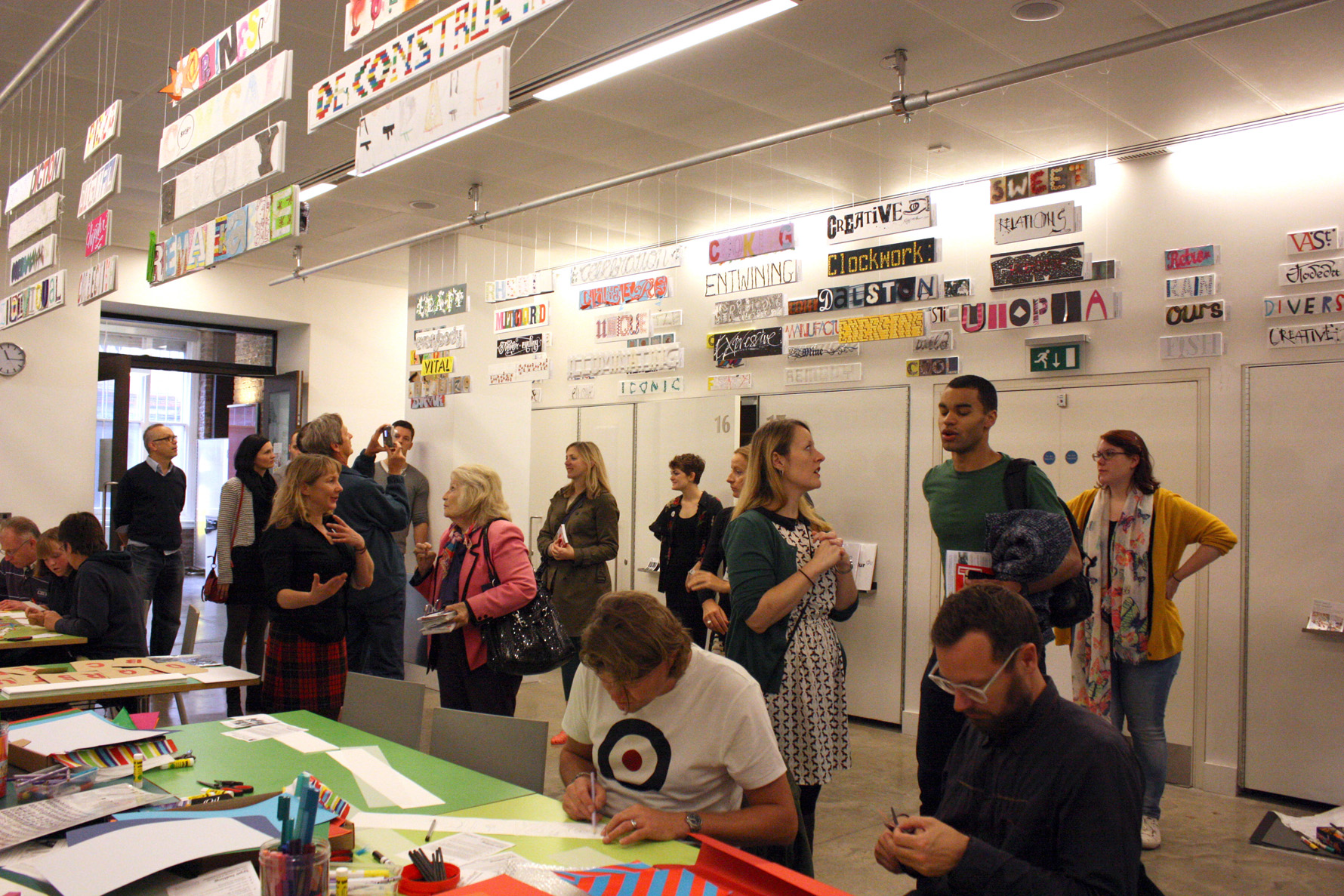 Creators of words at the drop in workshops on Saturday and Sunday: #Tweet 134 by Maria Kell, 25h City by Edward Hill, abracadabrab rules ok by James Whiting, Adventure by Marnie Matthews, Ale from Heaven by Markus & Navc, Alive by David Haynes, Alive by Alex Flynn, Amazing by Emily Hughes, Anand by Maya Homer, Animated by Stephen Greon, Architect by Henry Louth, Architecture by Natasha Vikulina, Artistic by Daniel Beilin, Artistic by Fumi Shimomosa, Assay by Michele Wyckoff Smith, atj by Aarefa Tayabji, Awesome by Toby Wyckoff-Smith, Bee by J Nuthall, Bloggers by Natalie Jahangiry, Bold by Susie Stimmel, Bright by Clare Benge, Bubble by Clare Gorton, Busy by Kristina Sinclair, Buzzing by Mary Tobin, Cabaret by Anastasia, Chatty by Alma, Citizen by Reni Hultema, Cloud by Kang E J, Collaborate by Erik Winterburn, Colour by Sam Osborne, Colourful by Adriana, Colours by Amy Bass, Commute by Joanna Moss, Complete by Sachi Otsuki, Code by Laurence Tucker, Creepy by Victoria Blair, Crowded by Natalia Wisniehska, Cuarenteria Cuarterona by Nathan Collis, Culture by Issy Speciale, Curiosity by Rachel Russell, Delight by Joanna Impey, Discover by Christophe Lalo, Different by Amanda Baker, Disorientated by Laura Abram, Diverse by Alice Corile, Diversity by Ning Wang, Do None Vertical (anagram of creative London) by Paul Fine, Dodamarcel by Dodam Jeong, Double Decker by Clare Flynn, Dreams by Alex Dana, Drukte (business) by Martijn De Bruign, Endless by Nicole Welsh, Escape by Cara Bray, Everything by Natalie Homer, Experience & Adventure by Alice Czarnouska, Fantastic by Dae Geun Kim, Fast by Tamila Bergaripova, Fetch by Michelle Chin, Flower by Mona Ma, Fluid by Jaimee Lowe, Fontastic by J Haywood, Food by Dom, Free by Phoebe Light, Frenetic by Hannah Machover, Friends & Family by Bindy, Fun & Fast by Dennis Asae, Funky by Stephen Peet, Future by Amelia Middle, Glass by Mario Corile, Gothic by Mark Thomas, Grool (great & cool) by Michelle Ku, Happening by Yi-Chun Chen, Hayabusa by James Abrahart, Hipster by Chloë Wood, Historic by Alice Smith, Home by Hannah Nicholls, Home by Natalie Horan, Hope by Hannah Shackleford, Imagine by Roberto Carlos Vera, Immerse by Christin Clement Louth, Inspiration by Linda Clifford, Inspire by Irinn Bischof, It’ll do by Annie Jakeman, Keep it Real Sunday Roast by Jacob Kisker, Lifeseed by Laura Kiritesal, Lively by Henri Timmerman, LOL# by Abi Lester, London by Daphne & Iris, London by Sarah & Lotte, London City (Arabic) by Rihan Fahed, Look by Zhane Connolly, Lost by Karen Gager, Lost by Mitasu Patei, Love by Candice Hewitt, LOVE88 by Hafiza Begum, Love Leila by Leila Wilson, Love Live & Laugh by Lisa Brown, Magical by Paula, Manufacture by Ed Thomas, Melqni Green by Elad Stein & Reut Newman, Monochrome by Mark Wilson, Multiculture by Mohamed Tabrez, Museum by Yang Ning & Bonnie Liu, Nature by Evie Peet, Non Stop by Jorge Pratscher, Open Connected by Deepti Jain, Organic by S Pavuncheva, Park by Sania Wilson, Perspective by Sally Plunkett, Play by Alejandro Martin, Polite by Eva Luna, Polluted by Madeleine Jablonowska, Pop Up by Jo Birch, Preston by Liz Lonstale, Reality by Ariel Weith, Reporter by Zimri Smith, Ricochet by Jake Goodall, Rie in the big city by Anne-Marie Hastings, Rose by Iris, Rush by Louise, Scrambled by Maya Homer, Scribbles by Consuelo Zaccaron, Sensation by Crispin Longden, Sharehouse by Kate Devine, Sharehouse by Daniella Wood, Sister by Irwin Nenneo, Speculative by Kendall Ahlberg, Springy & Skeleton by E Swain, Stripe by Sarah Sweetman, Stronger by Mariana, Stuff by Luke Wilson, #SWAG by Shorty aka Hema Vyas, Talks by Erik Delger, Taxi! by Lisbeth, Teeth Talk Tongue by Isabelle Neumand, Tolerant by Mar, Tourist by Jenni Sinclair, Tourist by Virendra Shinde, Transparent by Sam Kimberley, Trees by Corinne, Type by Satty Heer, Underground by Nitzah Michman, Urban mindi slang for ‘chaos’ & ‘buzz’ by Ayusm Jain, Varied by Dylan Flowers, Vast by Pauline Thomas, Vibrant by Sagun, Vibrant by David Edgar, Visitor by Claire, Wonderful London by Alice Sandford-Anderson, Yours by Tabitha Pring, Gemma Yussuf, Hafiza Begum, Nat Cooh.