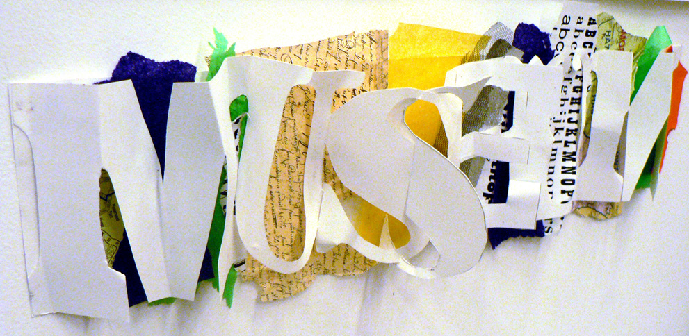 We’ve been posing the question “what’s your creative London?” and the collection overhead inspired participants to sit down and create their own responses. Many arrived looking determined and announcing “I’m here to make my word”. Our corner of the V&A became the hive of creativity and messy activity. The tables were filled with faces of concentration and the sounds of cutting and scribbling with the occasional “pass the glue?”. See portraits of the participants with their completed words.