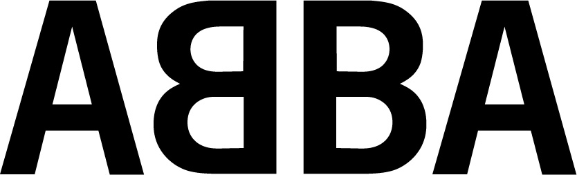 The band’s name is an acronym, comprising the first letters of each of the principal band members’ first names. It is set in News Gothic Bold typeface with the first B inverted so that the two pairs of letters represent each of the two couples in the band facing each other.