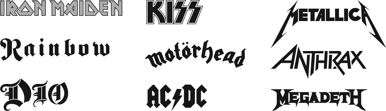 Heavy Metal [A]: This is a music genre that often uses Blackletter type either for its fantasy associations and links to Vampire films, or for the shock value of its associations with Nazi Germany.