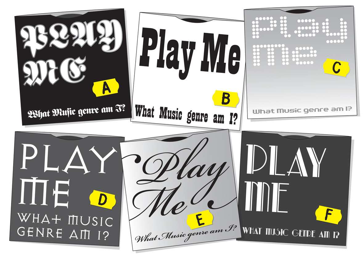 From looking at these record sleeves, which type of music would you expect to hear on each record?