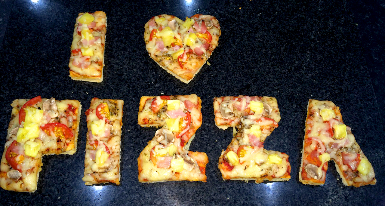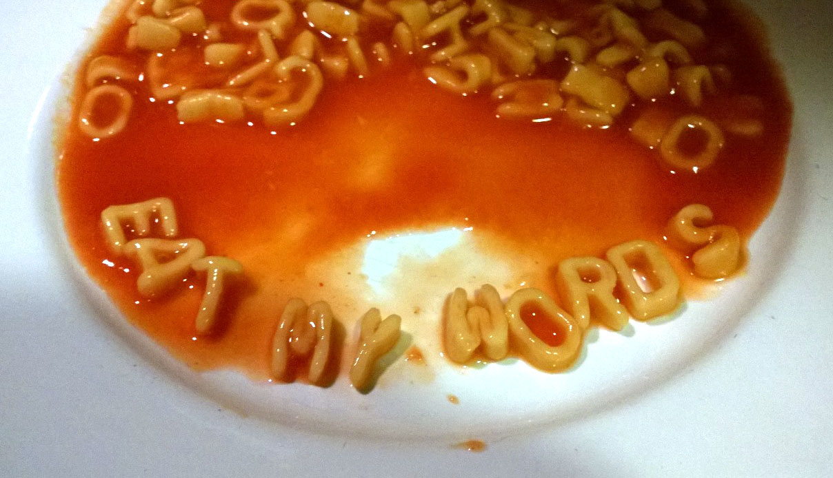 Christine Binns distracted her husband (who was cooking crab linguine to celebrate their first Valentine’s Day since getting married) for long enough to turn it into a word.