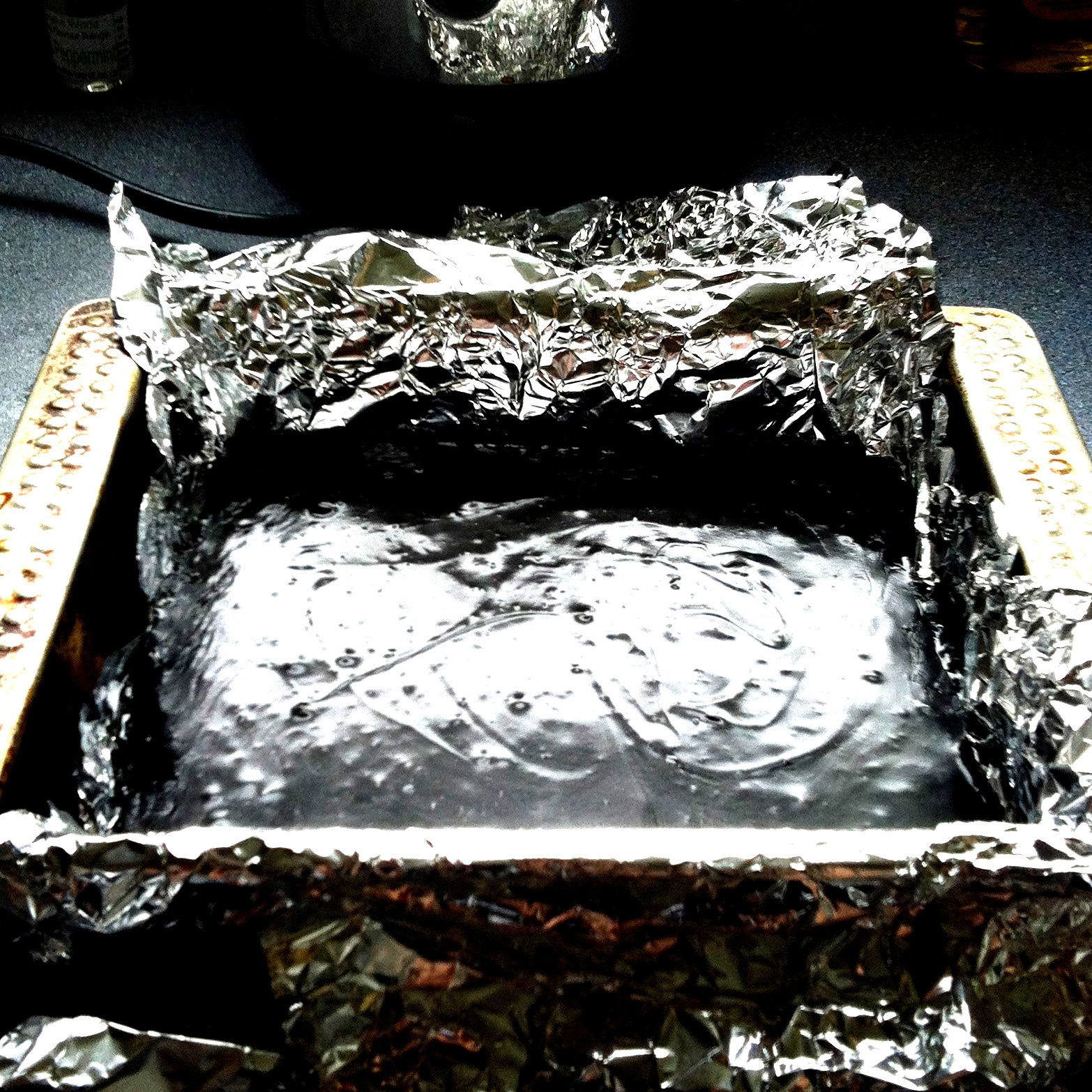 6. Pour the mixture into the prepared tray and leave to cool at room temperature (around 2 hours). The mixture should be 50-75mm deep.