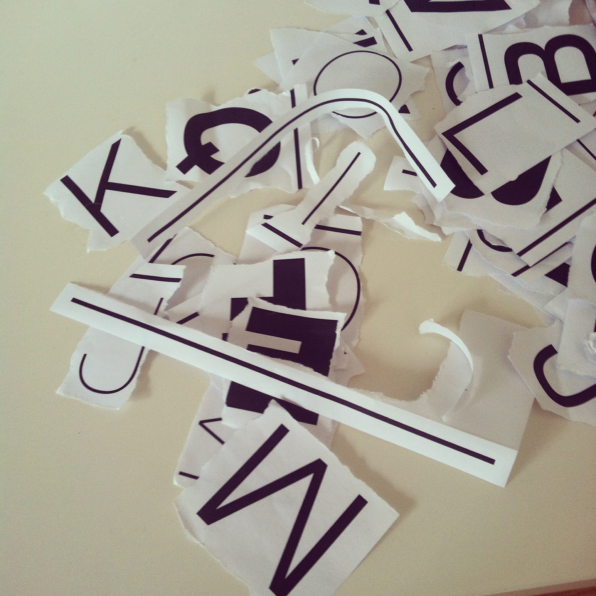On Sunday Sarah told the history of type using ten album covers to tell the story. This began with Blackletter, the first printed type style, and moved through the evolution of typography ending with the audience ripping up sheets of neatly aligned Helvetica to make an impromptu punk poster.