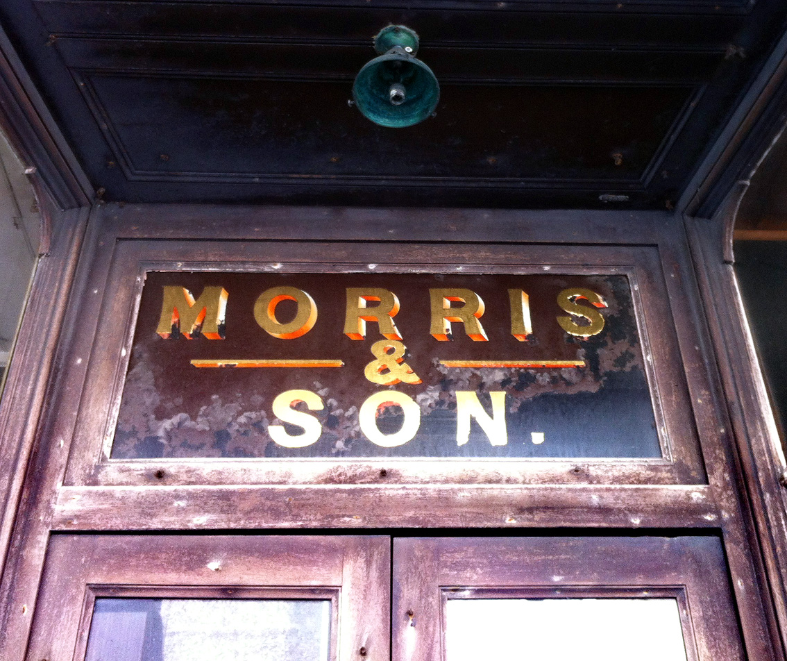 Above is the old Morris & Sons store in Barmouth which has been empty for years, below is the wonderful enamel sign on its door.