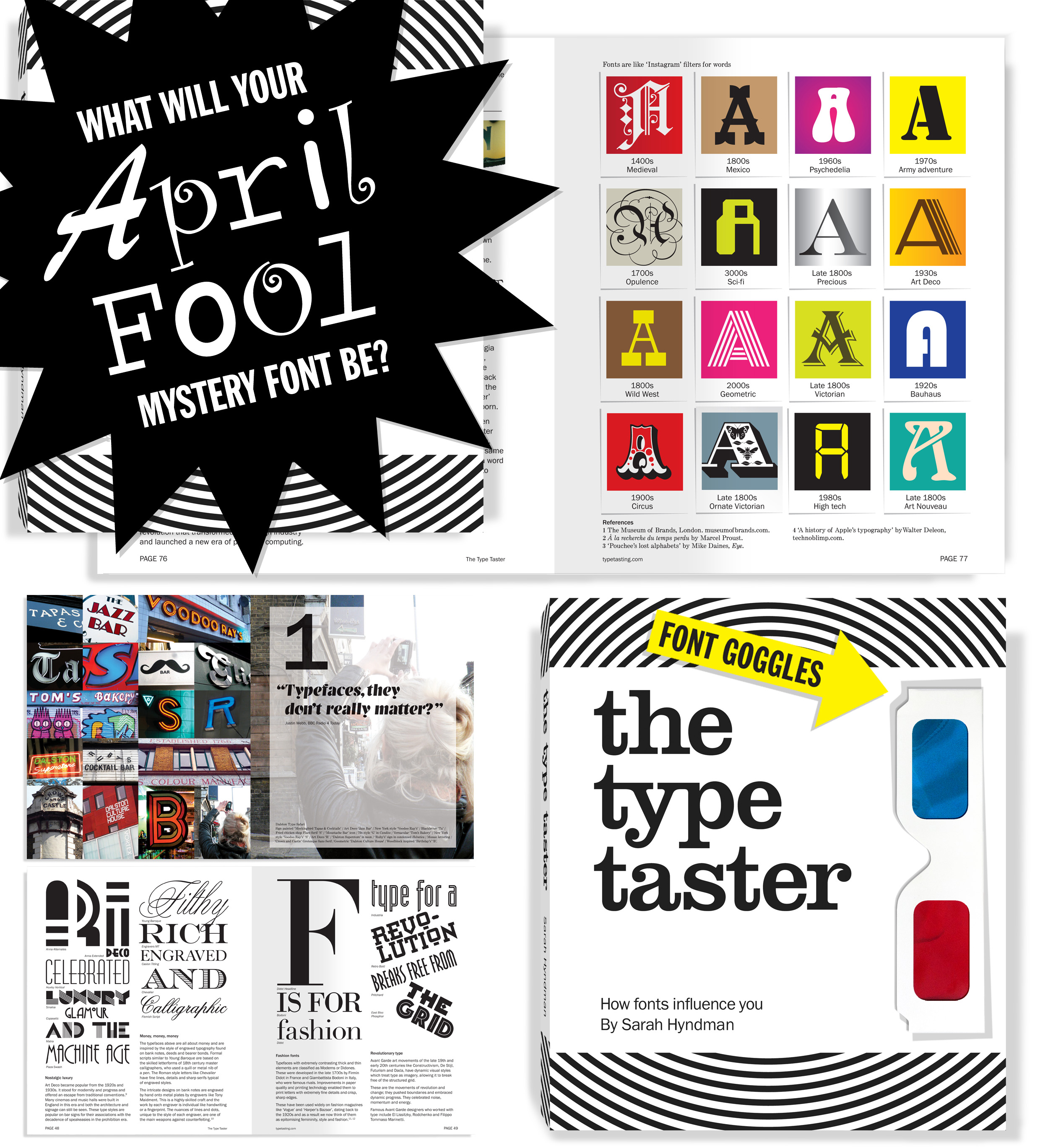 Happy April Fools Day! All copies of The Type Taster: How Fonts Influence You books purchased today will arrive with an exclusive April Fools dust jacket featuring a surprise font.