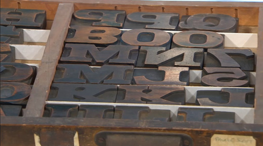 Tim: You’re now going to take us through the history of a few well-known fonts. First we’re going to look at this gothic font, when was this first used?
