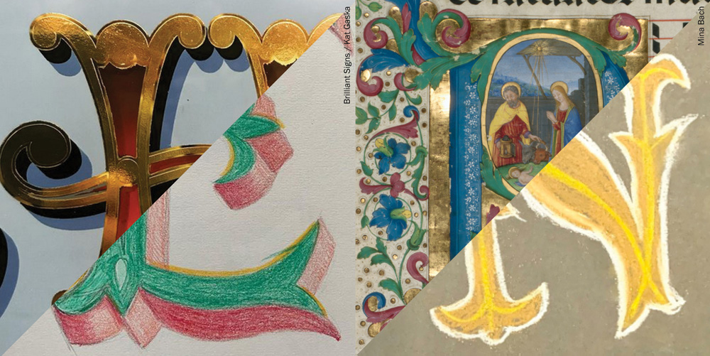 Draw or paint letters for your Christmas cards. Learn about decorative illuminated manuscript letters or Victorian ‘fishtail’ letters.