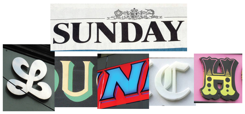 Presenters Simon and Tim Lovejoy have joined me for font sniffing, to chat about how menus can influence your appreciation of a meal and I’ve analysed their personalities from their font choices. I’ve talked about type trends in popular culture and where they come from. There are always lots of props and visuals. It’s fun preparing the content because the graphics team at the production company get excited about creating the visuals for the segment. After all, it’s all about typography!